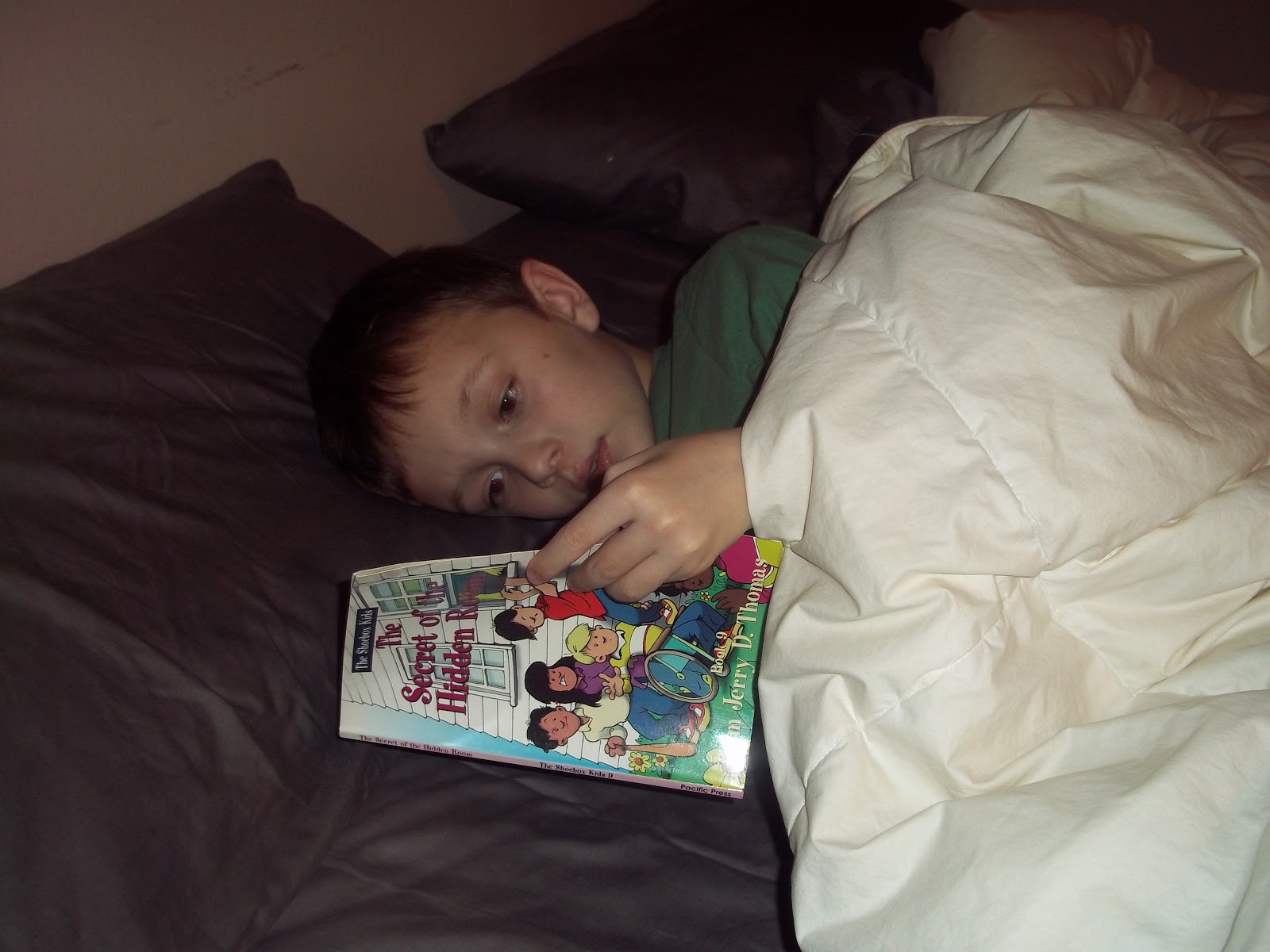 Thomas found one book that grabbed his attention, and here's how I found him that night.